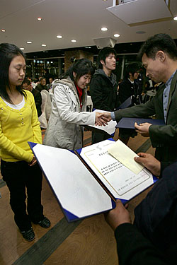 이날 본행사에 앞서 열린 '1회 통일꿈나무 금강산 글쓰기대회 시상식'에서 용산고 정미진 학생 등 10명이 '통일꿈나무상'을 수상했다.