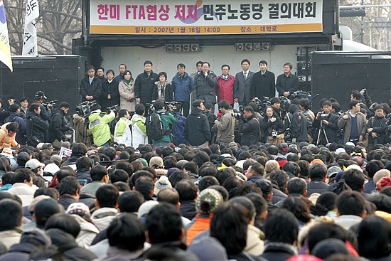 문 대표는 “노 정권이 한미FTA를 기어코 밀어붙인다면 20년 전 6.10민주화투쟁의 얼을 이어 노무현 장권을 끝장내고 민주노동당과 함께 새 정권을 만들자”고 호소했다.