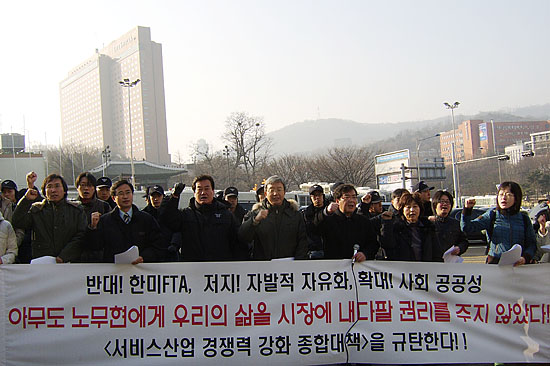 이들은 기자회견문을 통해 "한미FTA 추진과 병행하여 계획된 이번 '종합대책'은 서비스산업을 포함한 한국의 경제, 사회 체질을 신자유주의적으로 재편하여 자본만을 위한 사회구조를 확립하고, 그 결과 사회양극화를 더 심화시킬 것"이라며 한미FTA협상 중단 및 '종합대책' 철회를 요구했다.