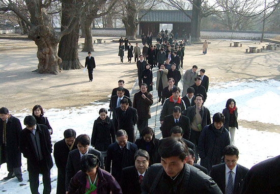 이날 이 장관의 개성방문은 김동근 개성공업지구관리위원회 위원장이 안내를 맡았고 현대아산 현정은 회장과 윤만준 사장, 한국토지공사의 최영 단지사업이사를 비롯해 입주기업 대표 10명, 통일부 직원 40여명, 출입기자단 36명 등이 동행했다.