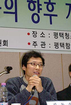 이날 발제를 맡은 평택대책위 김동수 집행위원장은 "지금까지는 주민들의 생존권이 주요 쟁점 중의 하나였으나, 기지건설이 진행될수록 평택 지역은 기지로 인한 피해 및 혜택의 사정거리에 곧바로 편입된다"고 전망했다.