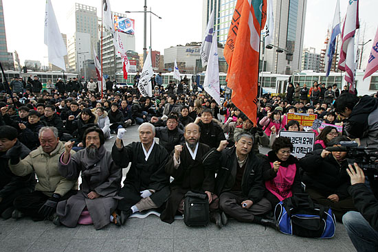 이날 범국본은 결의대회에 이어 종각에서 청계광장까지 3보1배를 진행할 예정이었으나, 보신각 일대와 종로타워 앞이 경찰병력과 버스로 봉쇄돼 무산됐다.