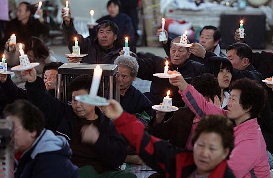 문 신부는 늘 그랬던 것 처럼 '팽성은 우리땅'을 목청 높여 부르기 시작했다. 주민들도 조그마한 목소리로 그들의 노래를 따라 불렀다. 그리고 입술을 지긋이 깨물고 눈을 감았다.