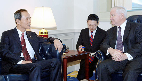 대한민국 국방부장관 김장수와 미 합중국 국방장관 로버트 게이츠는 2007년 2월 23일 워싱턴에서 회동하였다. 게이츠 장관은 의장대 사열로 김장수 장관의 미 국방부 방문을 환영하고 김 장관과의 단독회담 및 오찬을 겸한 확대회담을 주관했다. 90분간 진행된 회담에서 김 장관과 게이츠 장관은 동맹의 기본적 원칙을 재확인하고, 모든 동맹관리 현안에 대한 미래지향적 접근의 중요성을 포함, 동맹 변혁에 관한 근본적인 이해를 재확인하였다.