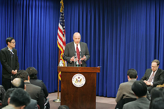 이날 오후 5시 35분 서울 용산구 남영동 주한미대사관 공보과 자료정보센터에서 내.외신 기자회견을 가진 네그로폰테 부장관은 이같이 밝히며, "이 의지를 통해서 이 지역의 안정을 가져올 수 있다고 생각한다"고 말했다.