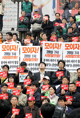 3월말 미국 TPA 시한을 앞두고, 한미FTA '끝장타결'을 위한 한미장관급회담이 26일 시작된 가운데, 이를 중단하라는 목소리가 더욱 확산되고 있다.