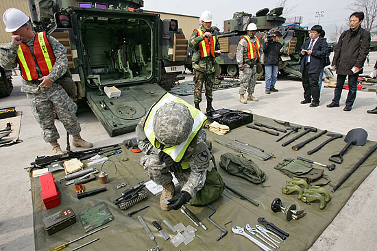 차량정비소 뒷편에서는 주한미군 주력전차인 M1A1 아브람스 탱크가 굉음을 내며 주행시범을 보였다. 이 탱크는 최고 시속 72KM 속력을 낼 수 있다.
