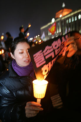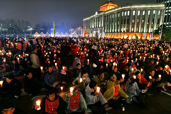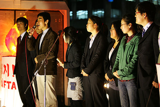 민주노동당 권영길 의원도 "한미FTA를 중단하는 촛불은 이 나라를 구하는 구국의 횃불"이라며 국민의 힘으로 한미FTA를 막아내자고 호소했다.