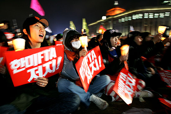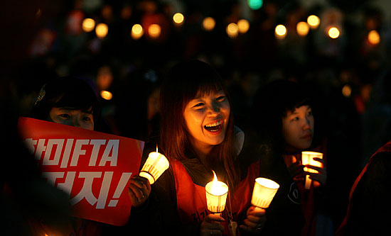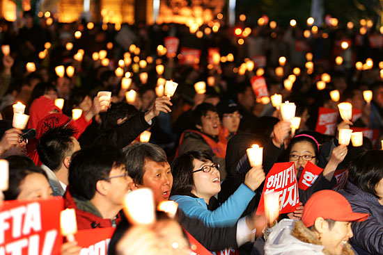28일 오후 7시 30분 '한미FTA저지 범국민운동본부(범국본, 공동대표 오종렬)'주최로 '한국이 봉이냐'라는 주제로 '한미FTA반대 범국민 촛불문화제'가 열렸다.