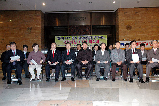 이들 의원들은 회의결과 △비상시국회의 대표단 구성 및 모임 정례화 △참여의원 확대 △협상타결시 상임위 차원의 청문회와 국정조사 추진 △협상전반에 대한 정보공개 추진 △협상타결시 향후 비준안 거부 투쟁 등을 결의했다.