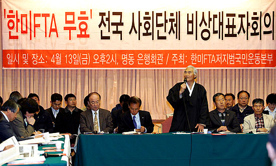 전국 800여개 시민.사회단체를 포괄하고 있는 ‘한미FTA저지범국민운동본부(범국본, 공동대표 오종렬 등)’은 13일 오후 2시30분, 서울 명동 전국은행연합회관에서 전국사회단체비상대표자회의를 개최하고 이같이 결정했다.