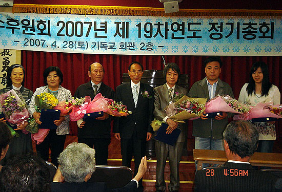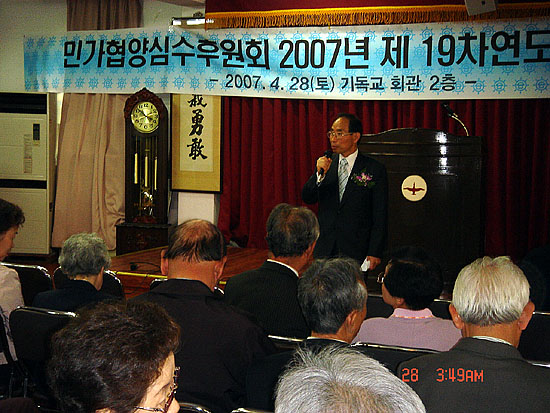 민가협양심수후원회(양심수후원회)의 ‘영원한’ 구호 ‘국가보안법 완전철폐!! 양심수 전원석방!’이 대회장 벽에 붙은 가운데 양심수후원회 2007년 제19차 연도 정기총회가 28일 오후 3시 대학로 소재 흥사단 강당에서 열렸다.