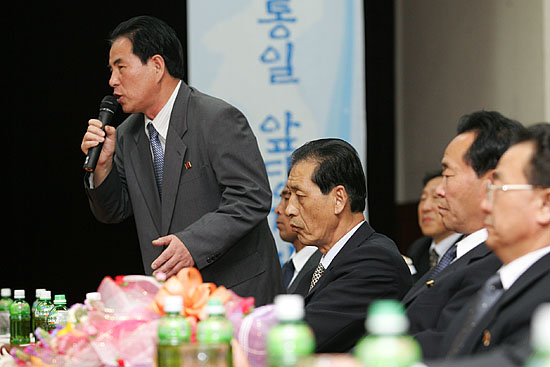 오후 7시 30분 현재, 창원호텔 목련관에서 북측 대표단 및 '6.15공동선언 실천을 위한 남측위원회' 백낙청 상임대표와 양대노총 경남본부 산하 대표자들 포함 240여명이 참석한 가운데 환영만찬이 열리고 있다.