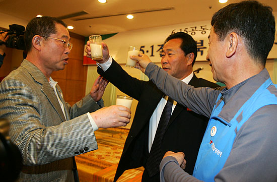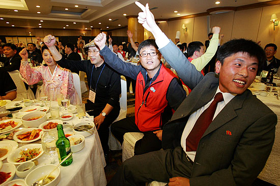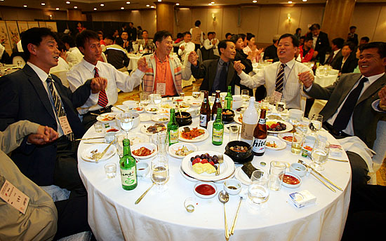 “자주통일 앞당기자”, “우리는 하나다” 등의 건배사가 연거푸 흘러나온 이날 만찬장은 ‘화기애애’하고 ‘왁자지껄’한 일상적 술자리 풍경으로 바뀌어 갔다.