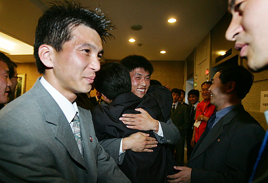 어제 남북대항경기에서 유일한 골을 터뜨린데 이어 오늘도 연대팀에 교체 투입돼 골문을 뒤흔든 북측 박철룡(24) 선수는 이틀간의 끈질긴 취재진의 요구에 "통일합시다"라는 짧은 건배사로 소감을 대신했다.