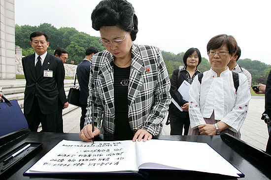 19일 오전 9시 30분경 북측 대표단이 서울 수유리 4.19민주묘지를 참배했다. [사진-통일뉴스 김주영 기자]