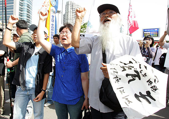 21일부터 매일 이어지는 촛불문화제에 꾸준히 참여하고 있는 반전평화단체 ‘다함께’ 전지윤 활동가는 “한 예술가가 전 일생을 들여 만들어놓은 작품을 통째로 검열당하고 있다”며 “작가의 구속은 87년 민주항쟁 20주년을 얼마 앞두고 이 땅의 민주주의를 거꾸로 보내려 하는 것”이라며 분노를 금치 못했다.