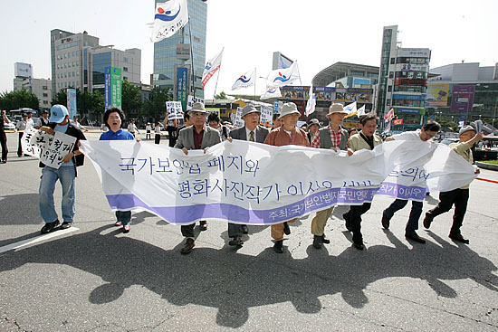 26일 오후 2시 서울역 앞 광장에서 ‘국가보안법폐지국민연대’(공동대표, 오종렬)주최로 ‘국가보안법폐지와 평화사진작가 이시우 석방촉구결의대회’에 참석한 250여 참가자들은 이시우 작가 석방촉구와 국가보안법폐지의 목소리를 높였다.