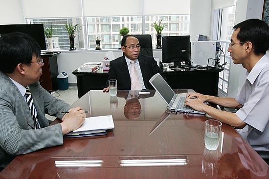 지난 두 달간 경공업.지하자원 개발 협력사업을 실질적으로 맡아 추진하느라 무척 바빴다는 박흥렬 회장과의 인터뷰에는 이송배 총괄기획부장이 배석했다.