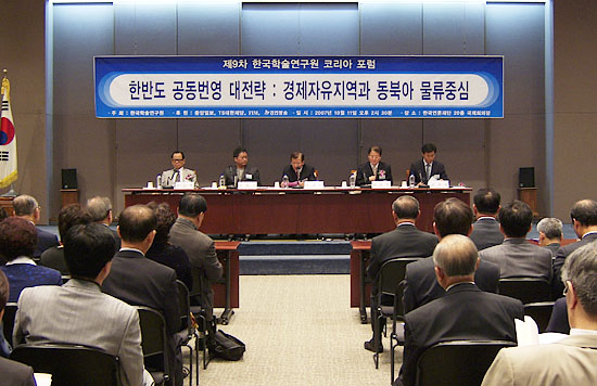 11일 오후 2시 30분 서울 프레스센터 20층 국제회의장에서 (사)한국학술연구원(이사장 박상은)은 '한반도 공동번영 대전략-경제자유지역과 동북아 물류중심'이라는 주제로 9차 코리아포럼을 열고, 그동안 연구해온 내용을 발표했다.