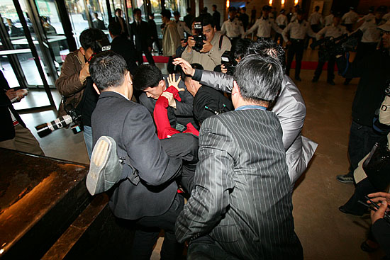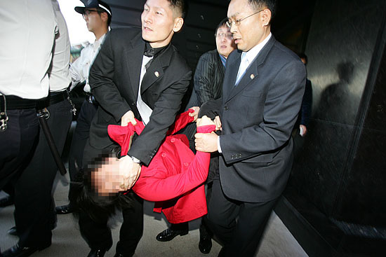 호텔 오른편의 구석에 십수 명의 경찰들에 의해 억류돼 있던 이들은 오후 4시 30분 경 도착한 경찰차에 태워져 서울 중부경찰서로 압송됐다.