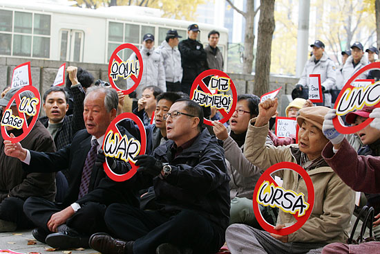 이들은 "한미 국방장관은 제39차 안보협의회의(SCM)를 열고 한미동맹을 침략적으로 더욱 강화하는 협의 결과를 내놓았다"며 "미국의 세계패권을 위한 이른바 '테러와의 전쟁'에 한미동맹을 지속적으로 동원하기로 하였으며, 6자회담의 전전과 남북정상선언에도 불구하고 북한의 위협을 과장하며 미국의 대북 선제공격계획과 핵우산 제공을 재확인했다"고 지적했다.