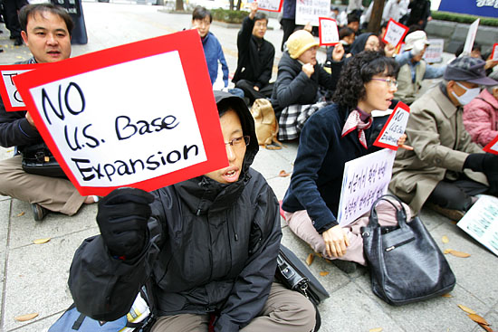 평택 주한미군 기지 조성공사 기공식이 열리는 13일 오전 10시 평통사, 범민련 남측본부, 평택대책위 등 시민사회단체들은 "성토비 55%, C4I이전비 60%를 부담하는 평택 미군기지 확장 기공식을 중단하라"며 주한미군 철수를 주장했다.