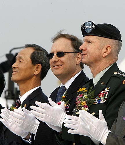 그는 이어 "평택 미군기지 이전을 계기로 한미 동맹관계는 더욱 굳건하게 다져지고, 양국의 국익 증진과 세계평화에 기여할 것을 확신한다"고 덧붙였다.