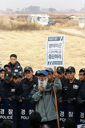 문정현 신부는 "물리적 힘에 밀려 안에 들어갈 수는 없다. 막대한 물리력으로 가로막는 정부를 물리력으로는 이길 수 없는 것 같다"면서도 "그러나 정부가 대추리를 빼앗아 갔다고 생각하고 있다면 그것은 큰 오산이다"고 목소리를 높였다.