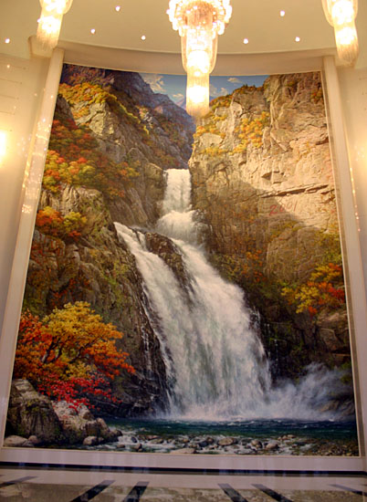특히 둘째날 참관지인 동평양 대극장 로비의 ‘울림폭포의 가을’은 올 초 새로 단장을 마친후 남녘에도 알려지기 시작해 관심이 갔다.