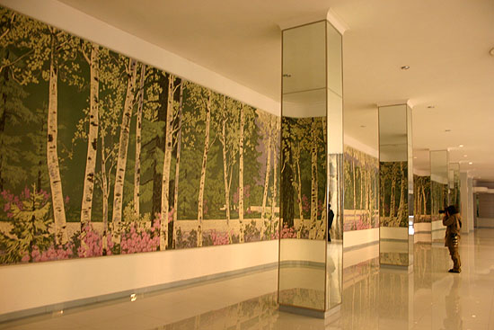 긴 복도를 따라 걷다 보면 어느덧 백양나무 숲길에서 상쾌한 공기를 마시며, 햇빛에 반짝이는 삼지연 물가를 산책하는 듯한 기분이 든다.