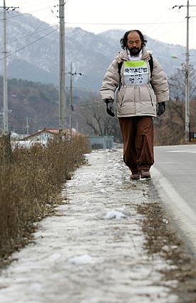 검찰은 지난 10일 그에게 징역 10년에 자격정지 10년, 압수물품 몰수라는 중형을 구형했지만 그는 지난해 11월 7일부터 국가보안법폐지를 위한 국회앞 삼보일배에 뛰어든 이래 12월 3일 혼자서 다시 삼보일배로 임진각으로 향했고, 지난 21일 마침내 임진각에 도달했지만 그는 아직 ‘국가보안법에 대한 명상’을 멈추지 않고 있다.