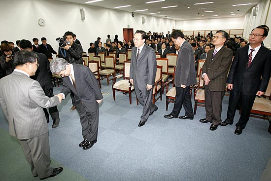 셋째, 외교 인프라를 지속 강화해 주십시오. 외교부에는 우수한 인재들이 많이 모여있지만, 이 문제에 있어서는 참으로 취약합니다. 그것을 위해 몸을 던질 각오가 필요합니다. 특히 외교 예산을 질적.구조적으로 개선시켜야 할 것입니다. 아울러 지난 수년간 크게 다양해진 외교부의 인적구성이 시너지 효과를 가져 오도록 운영해 줄 것을 기대합니다.