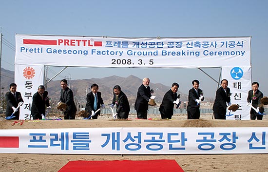 신언상 개성공업지구관리위원회 위원장은 축사를 통해 "오늘 착공은 외국기업으로서 첫 삽을 뜬다는 면에서 의미가 크다"면서 "프레틀 입주는 국제사회에 개성공단의 신뢰도를 높임으로써 해외 투자 유치에 크게 기여할 것"이라고 기대했다.