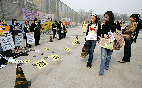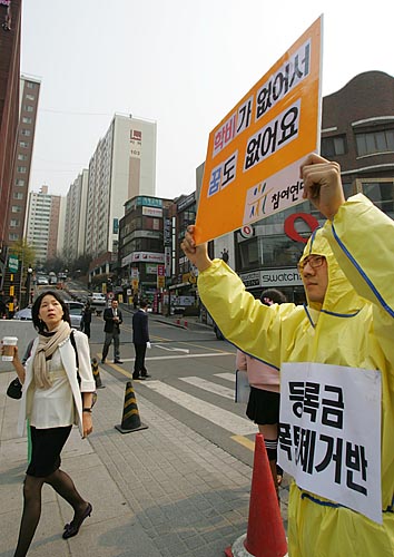 비싼 등록금에 시민단체가 학생들과 함께 전국 동시다발 범국민캠페인이 이어지는 가운데, 참여연대와 '등록금네크워크'가 12일 낮 서울 대현동 이화여자대학교 앞에서 학생들과 시민들에게 '등록금을 낮추자' 캠페인을 벌였다.