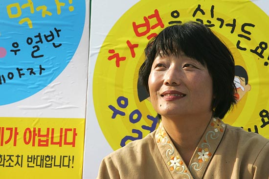 정진화 전교조위원장 단식농성장 옆에서는 4.15발표 철회를 위한 교육단체들의 릴레이 1인시위가 진행되고 있다. [사진-통일뉴스 조성봉 기자]