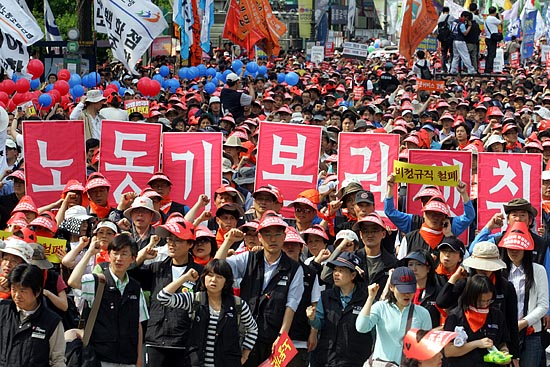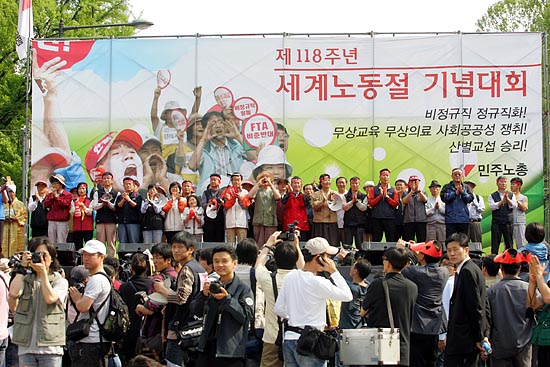 118주년 세계노동절에는 민주노총 지도부와 민주노동당 18대국회의원 당선자들도 함께 했다.[사진-통일뉴스 조성봉 기자]