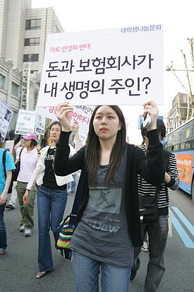의료보험민영화는 서민경제를 파탄시킬 것이다.[사진-통일뉴스 조성봉 기자]