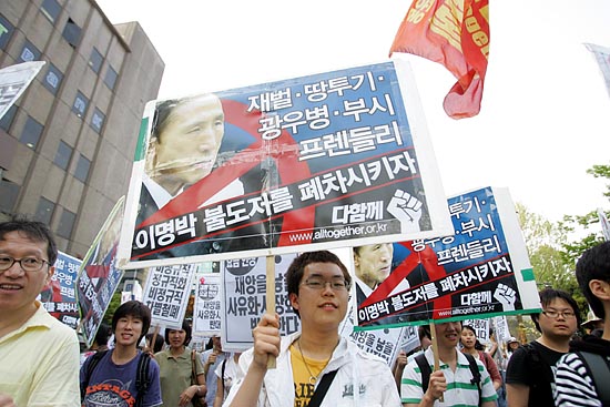 이명박대통령의 '불도저식 정책'이 멈추지 않는 한 민중들의 저항은 계속 될 것이다.[사진-통일뉴스 조성봉 기자]