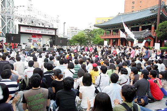 시민들은 범국민 문화제가 끝난 후 청계광장에서 이어지는 광우병 쇠고기 수입 반대 촛불문화제에 참가하기 위해 이동했다.