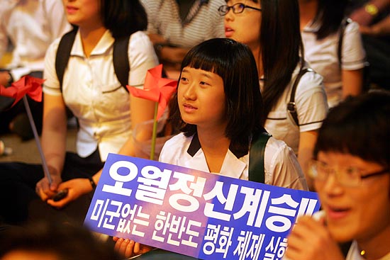 국제고등학교 3학년 여학생은 “당신(정부)들이 싸워야 할 것은 학생들의 민주화 의지가 아니라 우리를 위협하는 미국산 쇠고기이다”며 정부의 비민주적인 학생 탄압을 규탄했다.