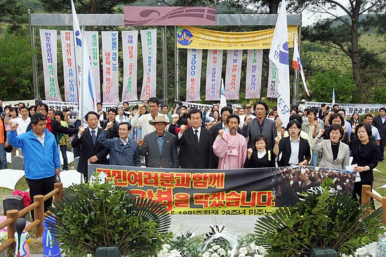 광주 망월동 구묘역, 꽃 이불 덮은 영령.[사진-통일뉴스 이계환 기자]