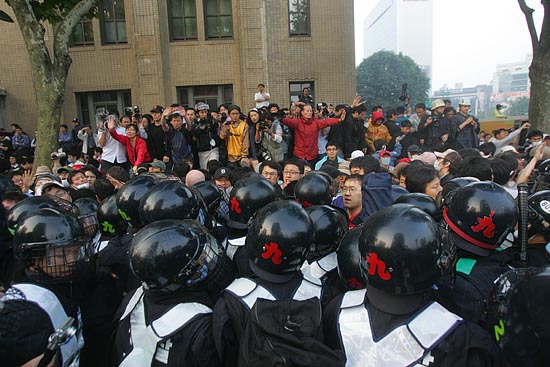경찰은 소화기를 뿌리며 시민들이 경찰차량으로 접근하는 것을 막았지만, 시민들은 계란과 빈 물병을 던지면서 응수했다.