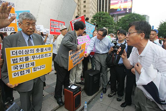 한편, 이날 촛불문화제가 열리기 전 서울 시청 광장 인근인 프레스센터 앞에서 서경석 목사 등 보수단체 회원 30여명이 피켓 시위를 벌이다가 '촛불 참가자'들과 말싸움을 벌이기도 했다.