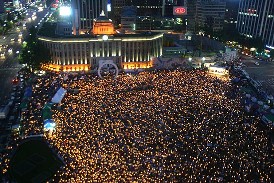 '광우병 미국산 쇠고기 반대', '이병박 타도'를 외치며 산화해 간 故이병렬 씨를 추모하는 촛불이 서울 시청 광장 앞에 타올랐다.