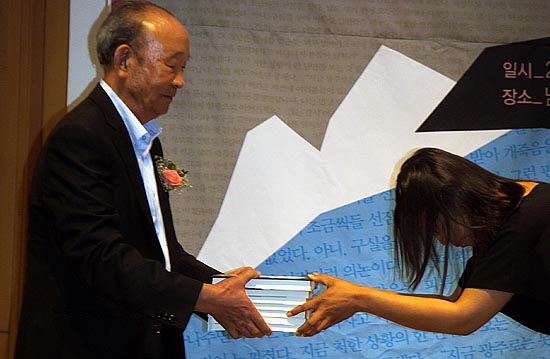 다음으로 소설 ‘빨치산의 딸’ 작가인 정지아 씨가 저서 헌정사와 함께 저서 헌정을 했다.