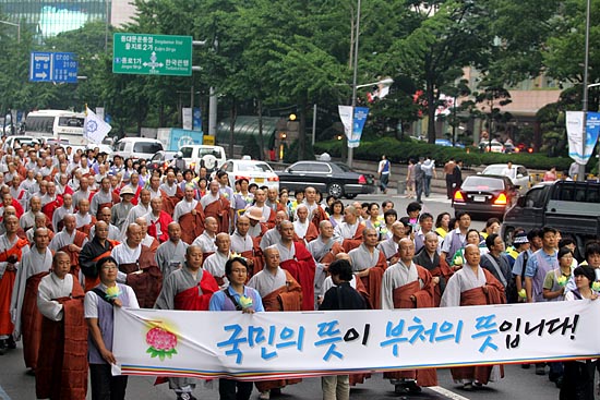 4일 시국법회에 참석한 스님들. 87년 6월항쟁 이후 최대 규모인 7백 여명의 스님들이 참석했다. .[사진-통일뉴스 조성봉 기자]