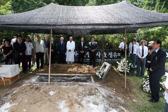 연일 불볕더위가 기승을 부리고 있는 29일, 낮 12시 30분 故 정유미 열사의 하관식이 유족들과 해.내외 통일운동가 70여 명이 참가한 가운데 모란공원에서 진행됐다.