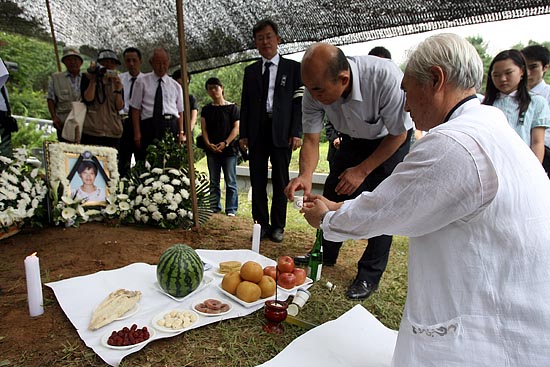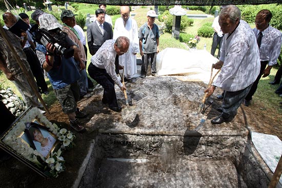 쟈니 씨를 비롯해 고인을 추도하는 '동지'들의 취토가 이어졌다. 흙을 가득 퍼낸 삽이 한 삽, 한 삽 허공을 움직일 때마다 관 위에 흙이 비처럼 쏟아졌고, 어느덧 관은 흙으로 완전히 덮여 모습을 찾아볼 수 없게 됐다.