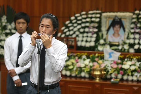 영결식은 민중가수 '아름다운청년', '희망새'와 암 투병을 도와줬던 박정희(47)씨의 두 아들 구연우(18)와 동훈(17)군의 하모니카 연주, 춤패 '출'의 공연으로 엄숙하면서도 경건하게 진행됐다.